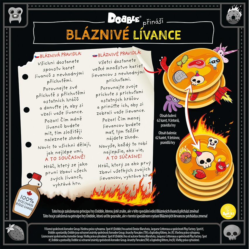 Všichni dostanete spoustu karet lívanců s nevhodnými příchutěmi a vašim úkolem je porovnat své příchutě s příchutěmi ostatních hráčů a donutit je, aby si vzali vaše lívance. Pozor! Čím méně lívanců budete mít, tím složitěji naleznete shodu. Navíc to všichni dělají, jak nejlépe umí, a to současně!