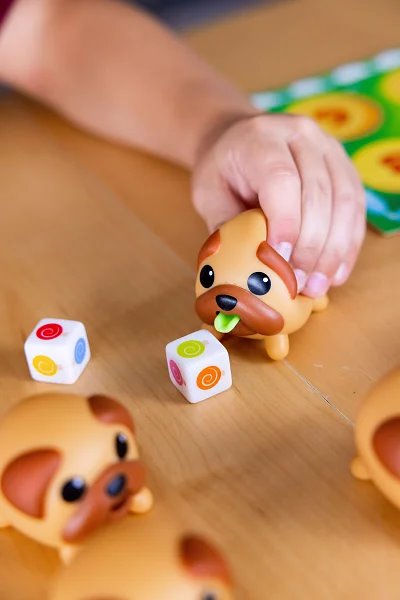 V každém kole se snažíte spárovat barevná lízátka hozená na kostkách s mopslíky, o kterých si myslíte, že je slízali.