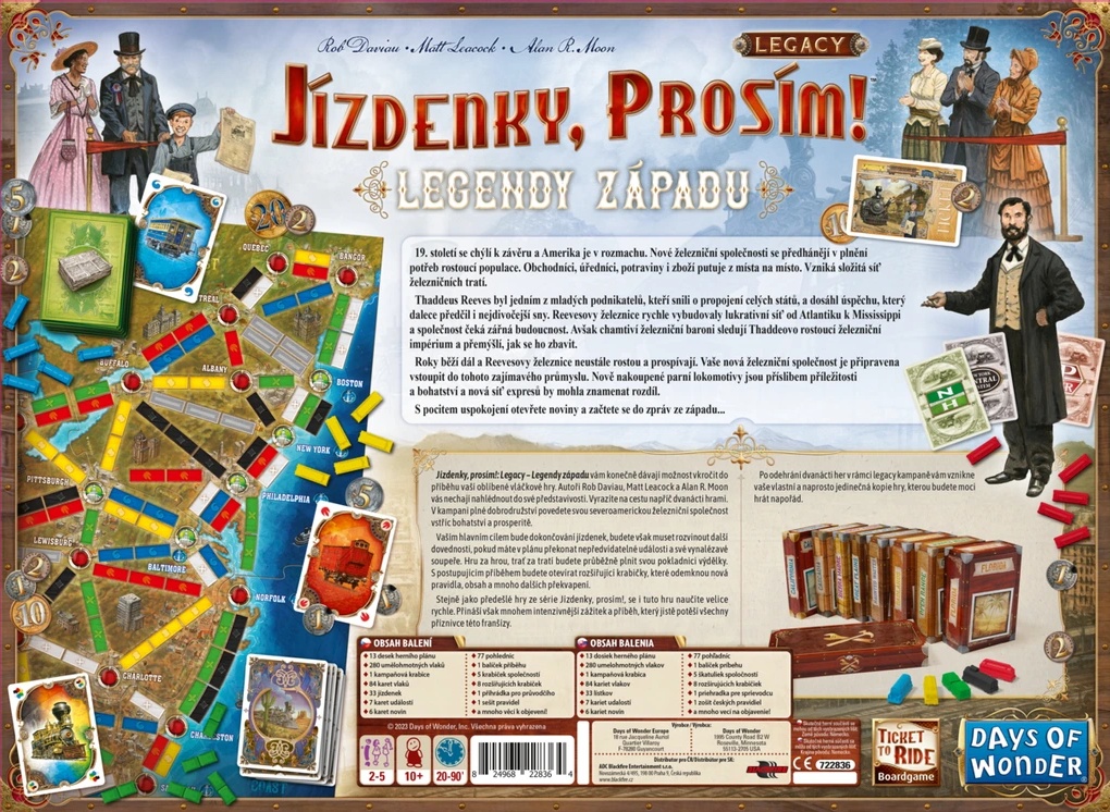 Jízdenky, prosím!: Legacy – Legendy západu vám konečně dávají možnost vkročit do příběhu vaší oblíbené vláčkové hry. Autoři Rob Daviau, Matt Leacock a Alan R. Moon vás nechají nahlédnout do své představivosti.
