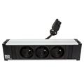Box pro systém CONI s osazenými 3 napájecími zásuvkami. Plně osazený box se 3 napájecími zásuvkami, určený pro montáž do krátkého rámu systému CONI. Konektory GST18M - 3x zásuvka typ E Kabel 3x 1,5mm2, H05VV-F Další informace - západky na bocích p
