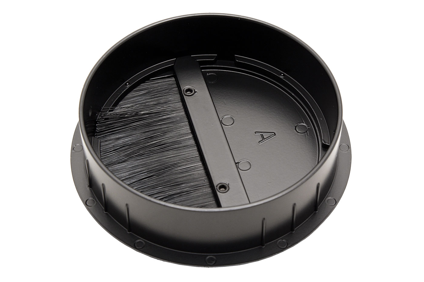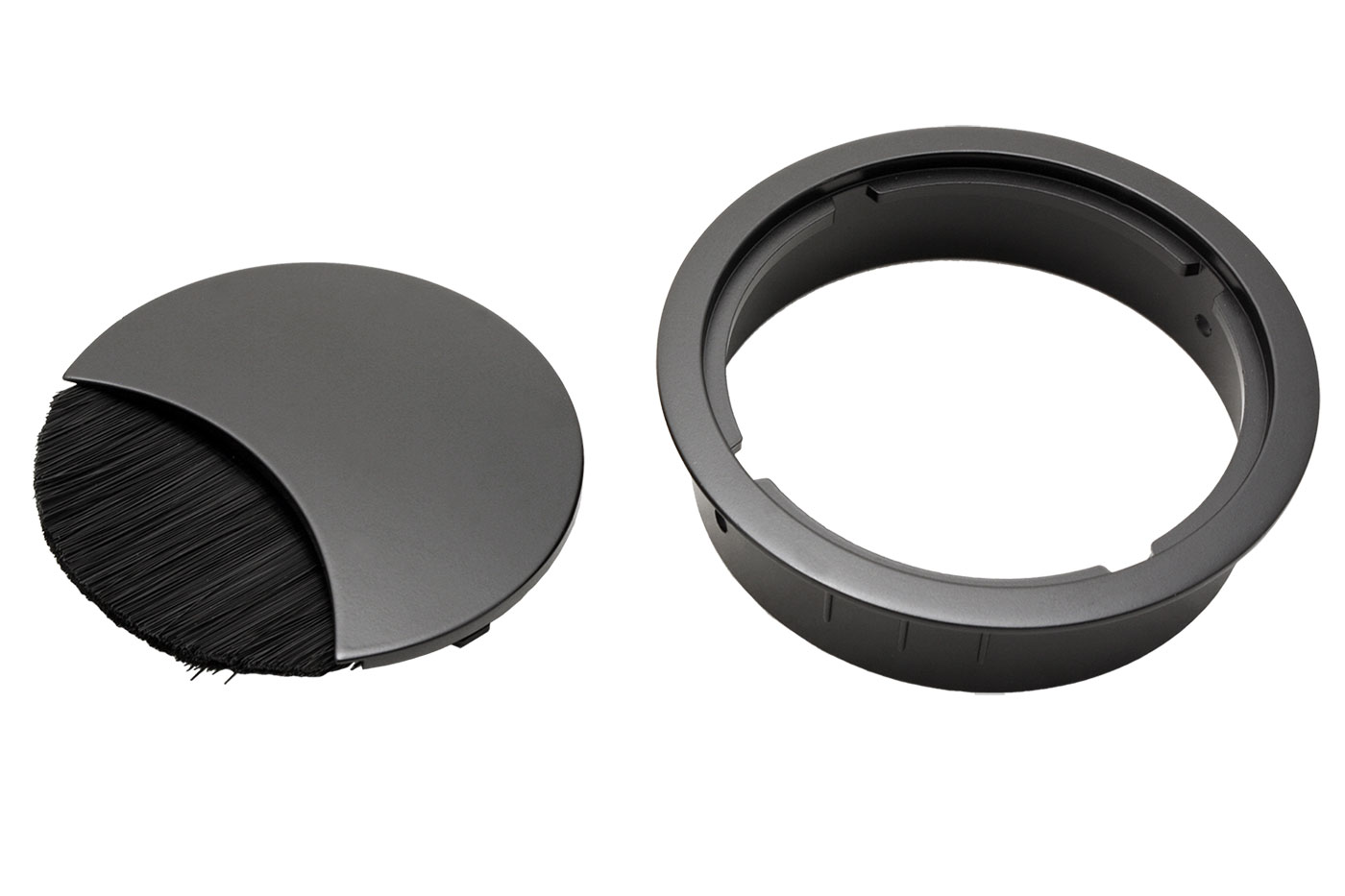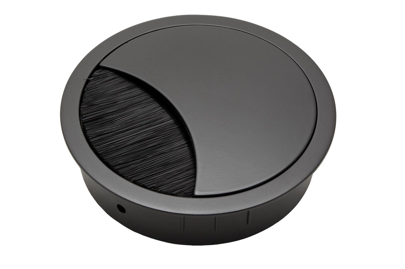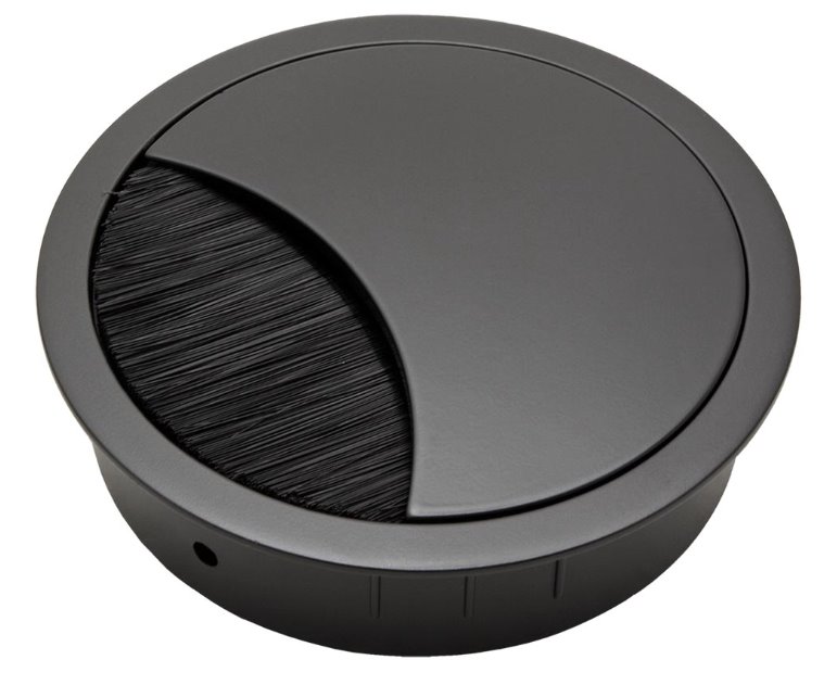 Kulatá průchodka do stolní desky s kartáčovým krytem.