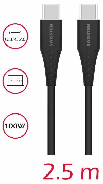 DATOVÝ KABEL SWISSTEN TPE USB-C/USB-C POWER DELIVERY 5A (100W) 2,5 M ČERNÝ