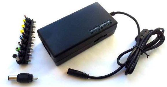 Zdroj má ochranu proti přetížení a zkratu výstupu. Ruční volba výstupního napětí posuvným přepínačem s LED indikací. 9 výměnných koncovek umožňujících připojení naprosté většiny notebooků a netbooků.