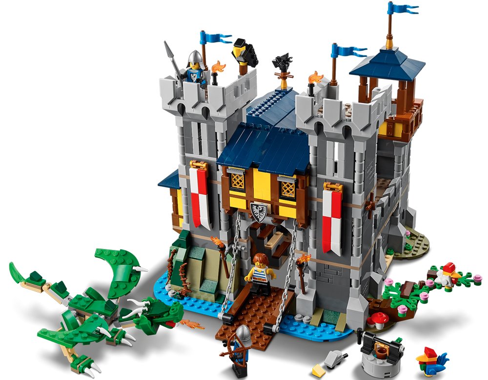 Dopřejte dětem možnost vrátit se zpátky v čase s detailně propracovanou stavebnicí Středověký hrad (31120) od LEGO® Creator 3 v 1.