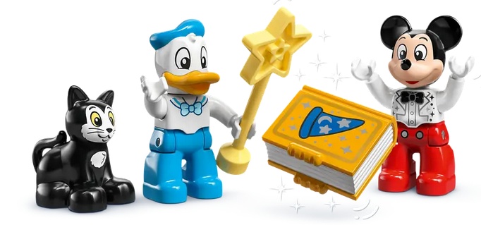 Stavitelé od 3 let si mohou přehrávat zábavné příběhy, ve kterých budou chystat oslavu pro Myšáka Mickeyho, Myšku Minnie, Kachnu Daisy, Kačera Donalda a kočku Figara od Disneyho.