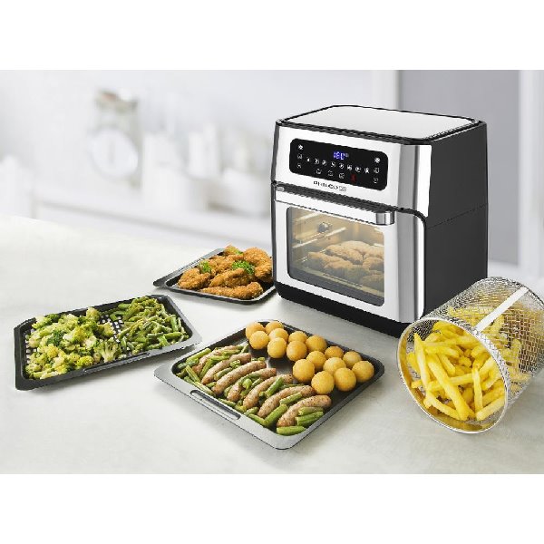 Horkovzdušná fritéza PHAO 1000 jde trochu dál, než klasické spotřebiče této kategorie. Krom klasického fritování horkým vzduchem máte možnost si například ugrilovat celé šťavnaté kuřátko na otočném rožni, usušit sezónní ovoce, zeleninu, nebo bylinky, připravit vynikající špízy, ohřát již uvařený pokrm nebo rozmrazit věci přímo z mrazáku.