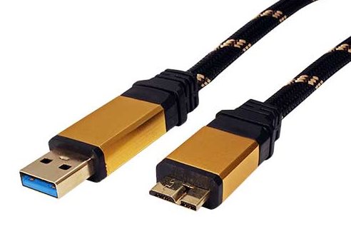USB kabel specifikace 3.0 Super-speed Konektory USB A(M) - Micro USB B(M) Přenosová rychlost 5 Gbit/s Délka 0,8m Barva černá, zlaté proužky USB 3.0 SuperSpeed kabel. Použití Připojení zařízení USB 3.0 s micro USB 3.0 konektorem. Kabel pruměr 6mm,