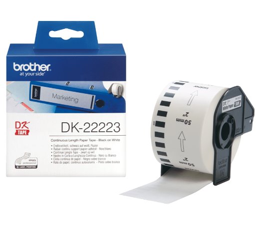 Originální Brother DK-22223 kontinuální papírová páska – černá na bílé - Páska je 30,48 m dlouhá, 50 mm široká