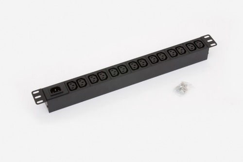 19" rozvodný panel 1U, 14x IEC320 C13 zásuvka max 10A, IEC320 C14 zásuvka max 10A, bez kabelu, RAL 9005