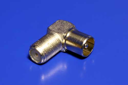 Lomená anténní redukce - přechod mezi F konektorem a konektorem PAL pro přechod z konektoru F na PAL v pravém úhlu