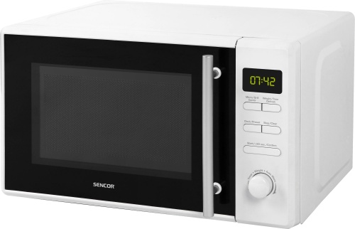 Mikrovlnná trouba s grilem. Je vybavená digitálním displejem s hodinami, časovačem a funkcí odloženého startu. Možnost nastavení síly výkonu.