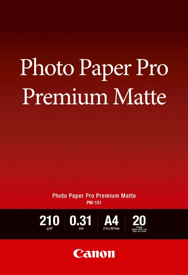 Photo Paper Pro Premium Matte PM-101 Formát A4 Gramáž 210g/m2 Tloušťka 0,31mm Povrch matný Balení 20 listů Kompatibilitu s vaší tiskárnou si vždy ověřte v návodu tiskárny, kde budou uvedeny jak formáty, tak maximální gramáže papíru.
