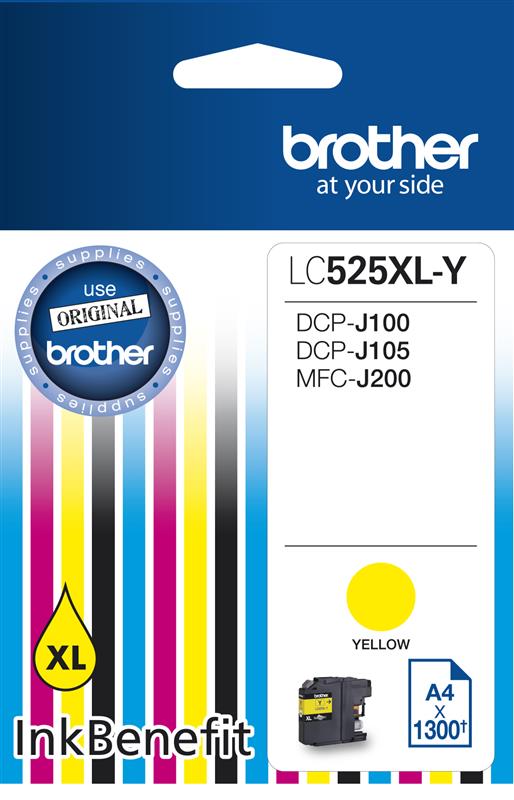 Originální náplň Brother LC-525XLY se žlutým inkoustem na max. 1300 stran dle ISO 24711
