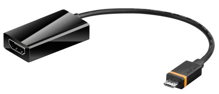 Pomocí tohoto adaptéru se SlimPort / MyDP rozhraním a HDMI kabelu můžete zobrazit obrázky nebo videa uložená na vašem smartphonu v HD kvalitě na monitoru nebo projektoru. SlimPort / MyDP je kombinací USB a DisplayPort konektoru nejnovějších smartphonů. Adaptér je vybaven standardním portem USB mikro samice na zadní straně. Jednoduše připojte napájení vašeho telefonu k portu USB Micro, aby jste mohli současně nabíjet vaše zařízení a ve stejnou dobu sledovat i video