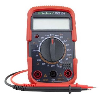 Malý digitální multimetr FK8250 s 3,5 místným displejem pro měření všech základních elektrických veličin. Díky robustní konstrukci vydrží měřící přístroj i trochu hrubší zacházení, takže je ideálním měřícím přístrojem pro každodenní použití.