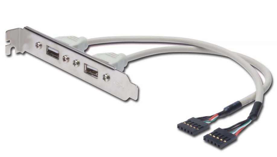 Záslepka slotu se dvěma USB porty (a samice) připojovací kabel s konektorem 2x5 pin. délka 25 cm, kabel AWG28 4-pinový, dvojité stínění