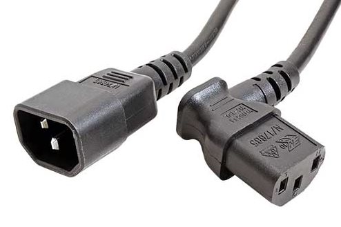 Kabel síťový prodlužovací, IEC320 C14 - C13, 90°, 1,8m