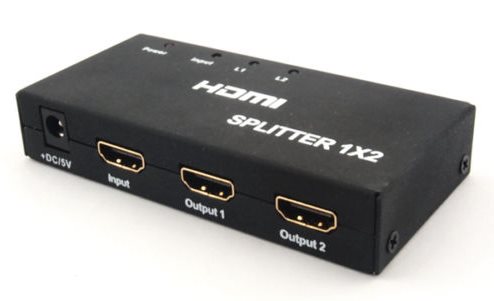 HDMI Video Splitter 1 => 2 Porty, 3D, 4K x 2K, FULL HD s napájením z USB Můžete připojit několik HDMI obrazovek k jednomu HDMI zdroji signálu. - Vstup: 1 x HDMI socket (Type A) - Výstup: 2 x HDMI socket (Type A) - Micro USB konektor pro napájení,