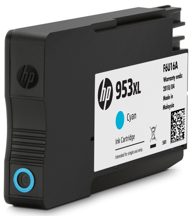 Inkoustová náplň HP 953 - azurová Barva: Azurová Výtěžnost (barevně): cca 630 stran Objem kazety: 10 ml Kompatibilita: HP OfficeJet Pro 7740, 8210, 8710, 8720, 8730, 8740