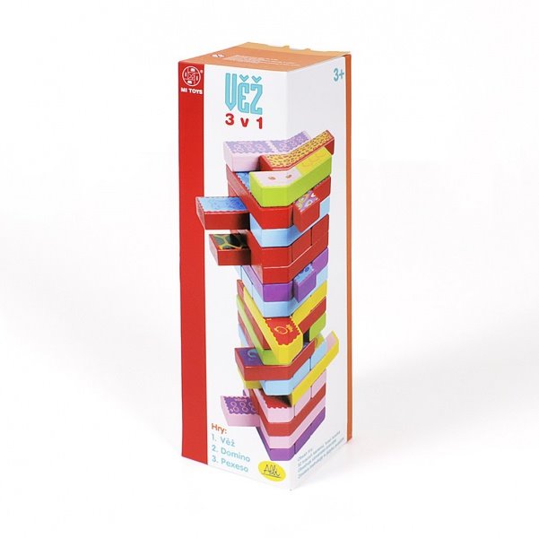 Věž 3v1 je určená především dětem, které se s dřevěnými hracími kameny pořádně vyřádí.