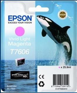 C13T76034010 Barva: Vivid Magenta Kapacita: 25.9ml Manufacturers Code: T7603 , EC13T76034010 Kompatibilita: Epson SureColor SC-P600 Printer (Kosatka)