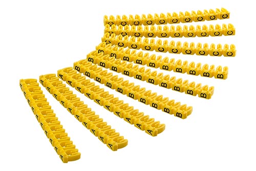 Značkovač na kabely, žlutý s písmeny A~C