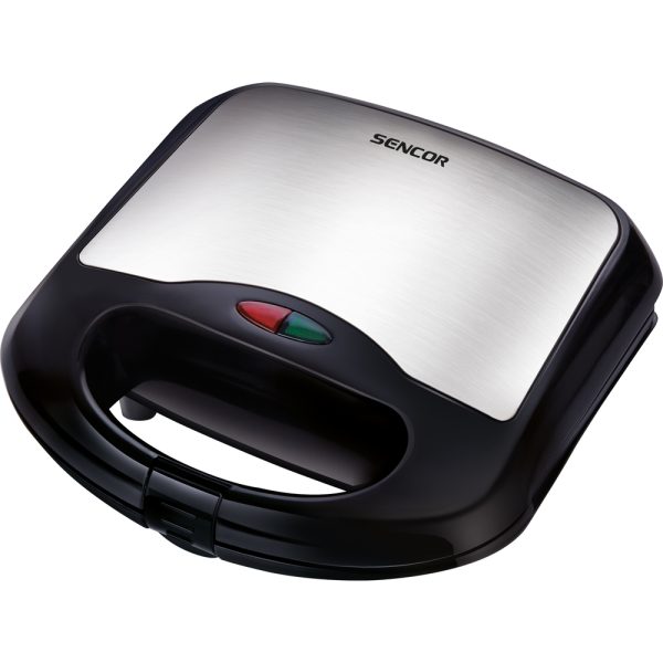 Sendvičovač Nerezové provedení Pro přípravu 2 čtvercových sendvičů Automatická regulace teploty Snadno čistitelné pečící plochy Nepřilnavá povrchová úprava pečících ploch Tepelně izolovaná rukojeť a plášť Indikátor provozu - červená kontrolka Indikátor nahřátí (připravenosti k pečení) - zelená kontrolka Možnost skladování ve svislé poloze Protiskluzové nožky Bezpečnostní tepelná pojistka Délka síťového kabelu 85 cm Příkon 700 W Rozměry (délka x hloubka x výška): 235 x 222 x 90 mm Hmotnost: 1,2 kg Napětí a kmitočet: 220-240 V, 50/60 Hz