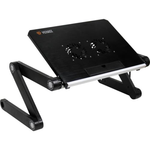 Chladící stojan pod notebooky do velikosti až 17". Hliníkové tělo a dva 80mm ventilátory zaručují dostatečný odvod tepla a optimální chlazení vašich přístrojů. Celkem šest otočných kloubu (360°) umožňuje nastavení notebooku do optimální polohy pro prací anebo zábavu a jeho vysoká stabilita je zaručena i na lehce nerovných povrzích. Stojan je velice snadno nastavitelný do různých výšek a pozorovacích uhlů a to z něj dělá skvělou pracovní pomůcku, ať je to v obývacím pokoji, ložnici, pracovně nebo venku. Díky lehké hliníkové konstrukci je tento stojan snadno přenosný a jeho malou hmotnost a rozměry oceníte při skladování anebo na cestách. Bezpečné "ukotvení" notebooku zajišťuje vyklápěcí zarážka, kterou lze použít i jako odkládací prostor pro drobnější věci.
