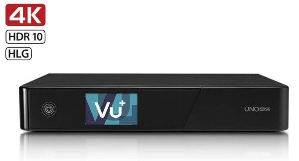 Vu+ Uno 4K SE je nový model 4K prijímača s UHD rozlíšením a najnovšími obrazovými normami HDR10 a HLG. Prijímač je vybavený LCD displejom 2,4" palca a vysokým výkoným dvojjadrovým ARM procesorom s frekvenciou 1,7 GHz(12000 DMIPS) doplnený o 2GB DDR4 operačnej pamäte a 4GB flash pamäte eMMC. Okrem 2,4" LCD displeja, ktorý disponuje aj funkciou Mini TV má VU+ UNO 4K SE možnosť vloženia pevného disku s veľkosťou 2,5" do výmenného šuflíka, ktorý sa nachádza na zadnej strane prijímača. Vo VU + UNO 4K SE je k dispozícii jeden vymeniteľný tuner FBC DVB-S2. Prijímač ma zabudovanú jednu čítačku kariet a jeden CI slot pre vloženie CI dekódovacieho modulu. Pre pripojenie k internetovej sieti má prijímač zabudovaný gigabitový etherrnet, taktiež je možné ho pripojiť k internetu pomocou wifi USB adaptéru. Okrem HDMI 2.0 výstupu má prijímač aj HDMI IN konektor pre pripojenie externého zariadenia s HDMI pripojením (XBOX, PSP, DVD a pod.). K pripojeniu USB komponentov má VU+ UNO 4K SE zabudované dva vysokorýchlostné USB porty 3.0.