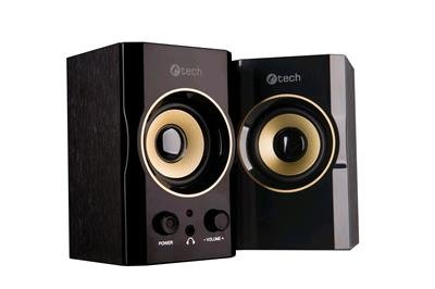REOE92 Repro C-TECH SPK-11, 2.0, dřevěné, černo-zlaté, USB