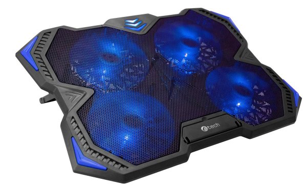Chladící podložka ZEFYROS je novým přírustkem do herní řady značky C-TECH. Se vzrůstající oblibou herních notebooků je třeba notebooky kvalitně chladit, aby nedocházelo ke zpomalování chodu notebooku v důsledku přehřívání a zaroveň tak prodloužit jejich vlastní životnost. ZEFYROS je moderní chladící podložka určena pro notebooky do velikosti 17,3". Hlavním parametrem podložky je chladící výkon a celková hlučnost, kterou produkují použité ventilátory. Chladící podložka ZEFYROS je vybavena čtyřmi ultra tichými ventilátory o velikosti 140mm s LED podsvětlením a možností regulace otáček. Vlastní regulátor se nachazí na horní straně a lze jím plynule regulovat otáčky ventilátorů.