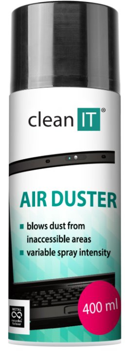 Stlačený plyn pro čištění (vyfoukávání) citlivých nebo nepřístupných míst elektronických zařízení (PC, notebooků, klávesnic, CD/DVD/Blu-ray mechanik, tiskáren atd.) a optických přístrojů (kamer, objektivů).