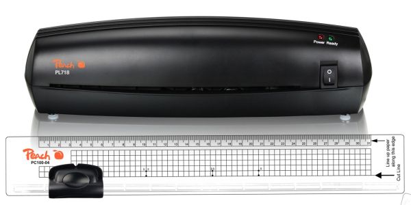 Osobní laminátor Peach Office Kit 2 v 1 je vhodný pro malou a domácí kancelář. Umožňuje kvalitní laminaci do formátu A4 (šíře štěrbiny 220 mm) a od 60 do 100 mikronů tloušťky laminovací fólie. Stroj se zahřívá přibližně 3 minuty. Přístroj má velice jednoduché použití - stačí zapnout, nechat nahřát topné válce a pak jen do vstupního otvoru postupně vkládat dokumenty v laminovacích kapsách.