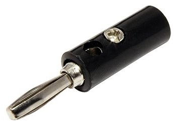 Konektor 4mm banánek šroubovací. Pro zakončení kabelů, například pro reproduktory, měřící sondy