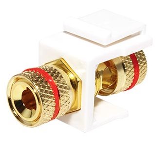 Keystone audio spojka reproduktorových vývodů na banánek nebo holý kabel.
