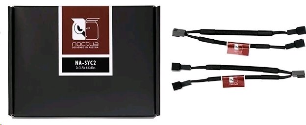 Noctua NA-SYC1 obsahuje 2 rozdvojené adaptéry NA-YC1 pro 3pinové větráky. Můžete tak používat dva větráky najednou s jedním kabelem zapojeným do základní desky a kontrolovat je zároveň. Můžete také propojit více větráků pomocí propojení více kabelů do jednoho. Před připojením kabelů se ujistěte, že celkový výkon větráků nepřesáhne hranici 9,6 W nebo 12 W, dle specifikací desky.
