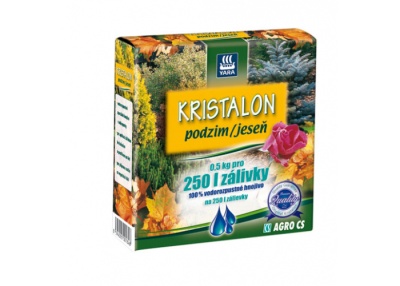 HNOJIVO AGRO KRISTALON PODZIM 0,5 KG je vodorozpustné univerzální hnojivo s mikroprvky, které přispívá k lepšímu přezimování okrasných a ovocných dřevin, růží, jahod, vyzrávání plodů.