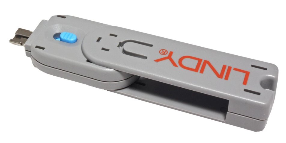 Záslepka slouží jako ochrana USB zásuvky před poškozením, znečištěním a neoprávněným použitím. Z USB portu se vysouvá za použití tohoto klíče.