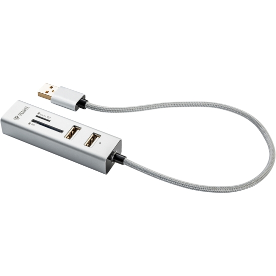 Stylový adaptér pro USB 2.0 kombinující rozbočovač USB s čtečkou karet. Rozšíří vaše PC o tři doplňkové porty USB pro připojení externích zařízení, jako například myši, klávesnice, telefonů, externího pevného disku, zařízení flash apod. Čtečka karet s dvěma sloty podporuje automatickou detekci karty a je kompatibilní s většinou oblíbených formátů paměťových karet.