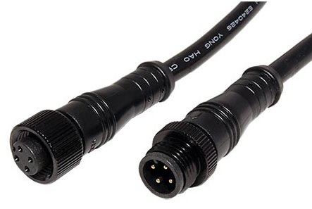 Prodlužovací kabel s kulatými 4 pinovými konektory se šroubovým upevněním M12. Kód A.