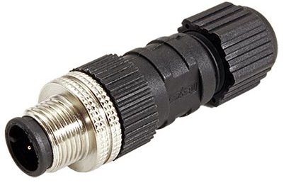 Kulatý 4 pinový konektor se šroubovým upevněním M12 a plastovým krytem. Samec s vněším závitem. Kód A. Pro připojování zařízení v průmyslovém prostředí. Kód A - použití pro připojování senzorů na sběrnici Devicenet, IO link a Profibus