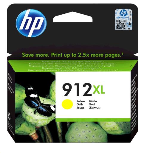 HP 912XL Purpurová originální inkoustová kazeta s vysokou výtěžností Průměrná výtěžnost kazety cca 700 stran (Testováno na tiskárně HP OfficeJet 8010. Průměrná výtěžnost kombinovaného tisku (azurová/purpurová/žlutá) vychází z normy ISO/IEC 24711 nebo m