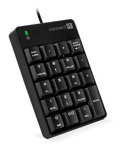 Drátová externí numerická klávesnice určena pro domácí i kancelářské profesionální použití slouží jako přídavná klávesnice pro výpočty. Své uplatnění najde zejména u notebooků, které nemají samostatnou numerickou část a čísla je na nich nutno zadávat dvojstiskem kláves přes Shift klávesu. Výborně poslouží i v případě, kdy potřebujete mít klávesnici na druhé straně a ovládat ji levou rukou. Ideální pro všechny, kteří pracují s účetnictvím, tabulkami, výpotovými a finančními aplikacemi.