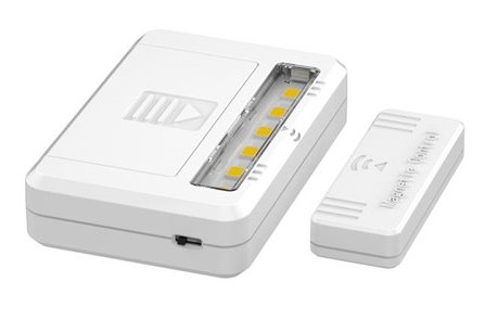 LED světélko do komod, zásuvek a skříní automatické rozsvícení při otevření zásuvky či dvířek, zhasnutí ihned po zavření zásuvky příkon: 0,5W světelný tok: 40lm teplota světla (chromatičnosti): 4000K (neutrální bílá) doba svícení: cca 60hodin (v závislosti na kvalitě baterií) baterie: 2x AAA (nejsou součástí) vypínač: vypnuto (OFF) / automatické spínání pomocí magnetické indukce (ON) barva: bílošedá