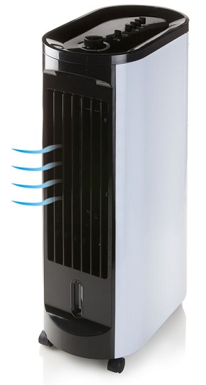Ochlazovač vzduchu vybavený ionizátorem vyplňuje mezeru mezi ventilátory a mobilními klimatizacemi. Ochlazovač vzduchu umí nejen zvlhčit suchý letní vzduch, ale také jej ochlazuje studenou vodou z vestavěného zásobníku. Ionizátor vzduchu pak obohacuje vyfukovaný vzduch o záporně nabité ionty, které příznivě působí na dýchání osob trpícími např. alergiemi, astmatem, nebo sennou rýmou. Mobilní ochlazovač vzduchu lze díky praktickým zapuštěným rukojetím, nebo pojezdovým kolečkům snadno přenášet, či přemisťovat.