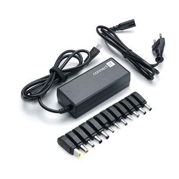 CI-132 Notebook Power --- CONNECT IT univerzální notebookový adaptér 70 W. Správnou funkci adaptéru signalizuje LED kontrolka. Adaptér je vybaven ochranami proti přepětí, nadproudu a zkratu, které brání poškození vašeho notebooku a díky svým kompaktním rozměrům jej můžete vzít vždy s sebou a napájet svůj notebook kdykoliv budete potřebovat. Součástí balení je 12 vyměnitelných koncovek s praktickým držákem. --- Ultrakompaktní provedení. Univerzální napájecí adaptér pro notebooky značek SONY, Fujitsu, Toshiba, NEC, Lenovo, IBM, Lite-On, Delta, Acer, ASUS, DELL, Getaway, HP, Compaq. --- Výstupní výkon: 70 W Automatické nastavení s LED kontrolkou Ochrana proti přepětí, nadproudu a zkratu Délka vstupního kabelu: 120 cm Délka výstupního kabelu: 120 cm Rozměry: 115×49×29 mm Vstup: 100-240V~50/60Hz 2A AC Výstup: 12/15/16/18(18,5)/19(19,5)/20/24 V DC Provozní teplota&vlhkost: 0 až 45°C/90 %