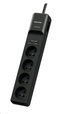 Přepěťovka CyberPower Surge protection se 4-mi českými zásuvkami a 2-mi USB porty
