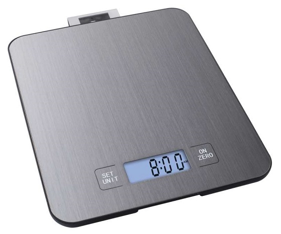 Vlastnosti: LCD displej barva stříbrná funkce postupného dovažování Tara maximální zatížení 15kg přesnost vážení na 1 gram jednotky váhy: g, kg, oz, lb automatické vypnutí po 35 sekundách indikace slabé baterie napájení: 2× 1,5 V AAA (nejsou součástí balení) rozměr: 176×15×216cm