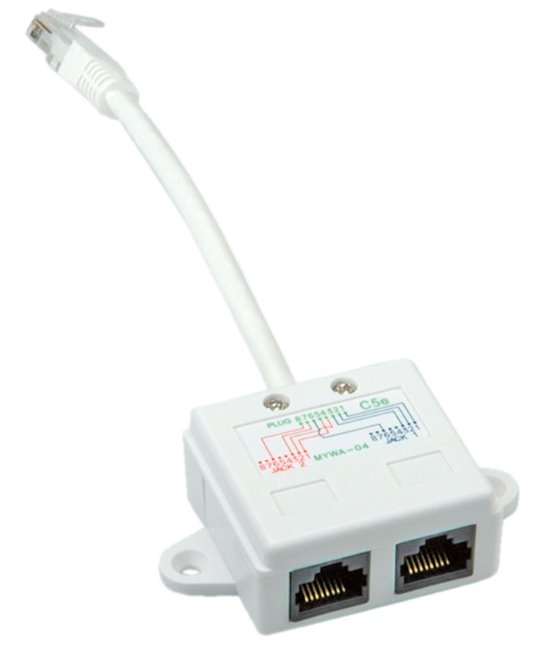 Adaptér umožňuje sloučení 2 Ethernet vedení do jednoho a jejich opětovné rozdělení (s požitím druhého adaptéru). Není určen pro prosté rozbočení ethernetu (internetu)!