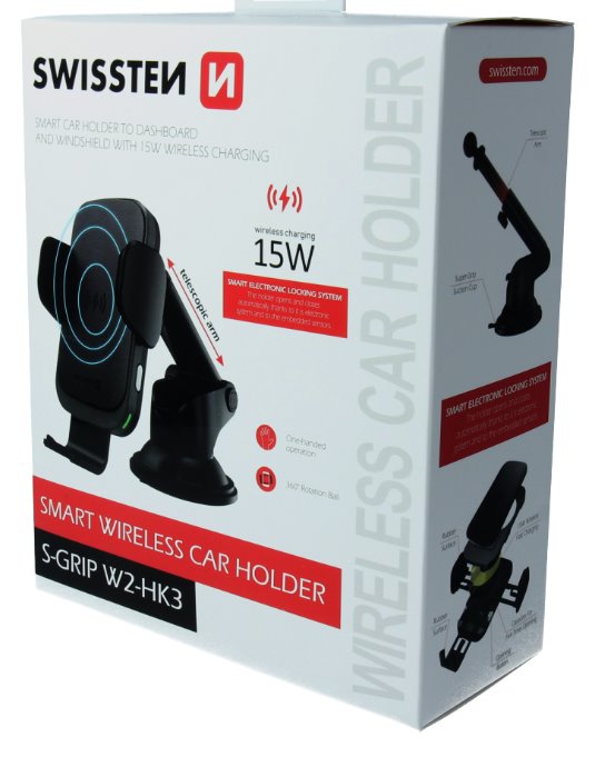 Držák do auta s bezdrátovým nabíjením SWISSTEN S-GRIP W2-HK3 je určen pro umístění na palubní desku. Držák disponuje rychlým nabíjením s výkonem15W. Baleno v blistru Swissten.